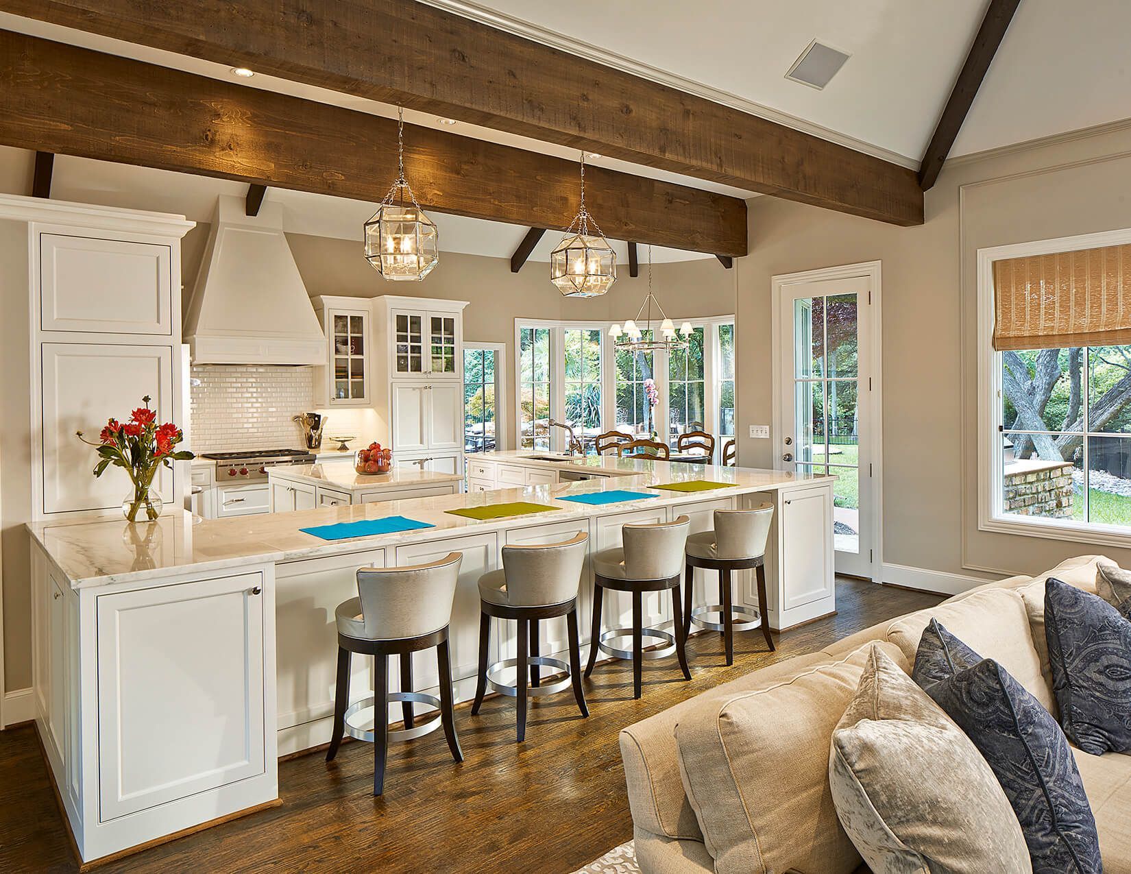 The previously remodeled kitchen’s traditional design and separation from an adjacent den were issues that our customer desired to update. The kitchen was expanded into space formerly occupied by a powder bath and storage room allowing for increased countertop area and “L” shaped peninsula that serves as additional seating for the den and better accommodates the size-able family and guest gatherings.