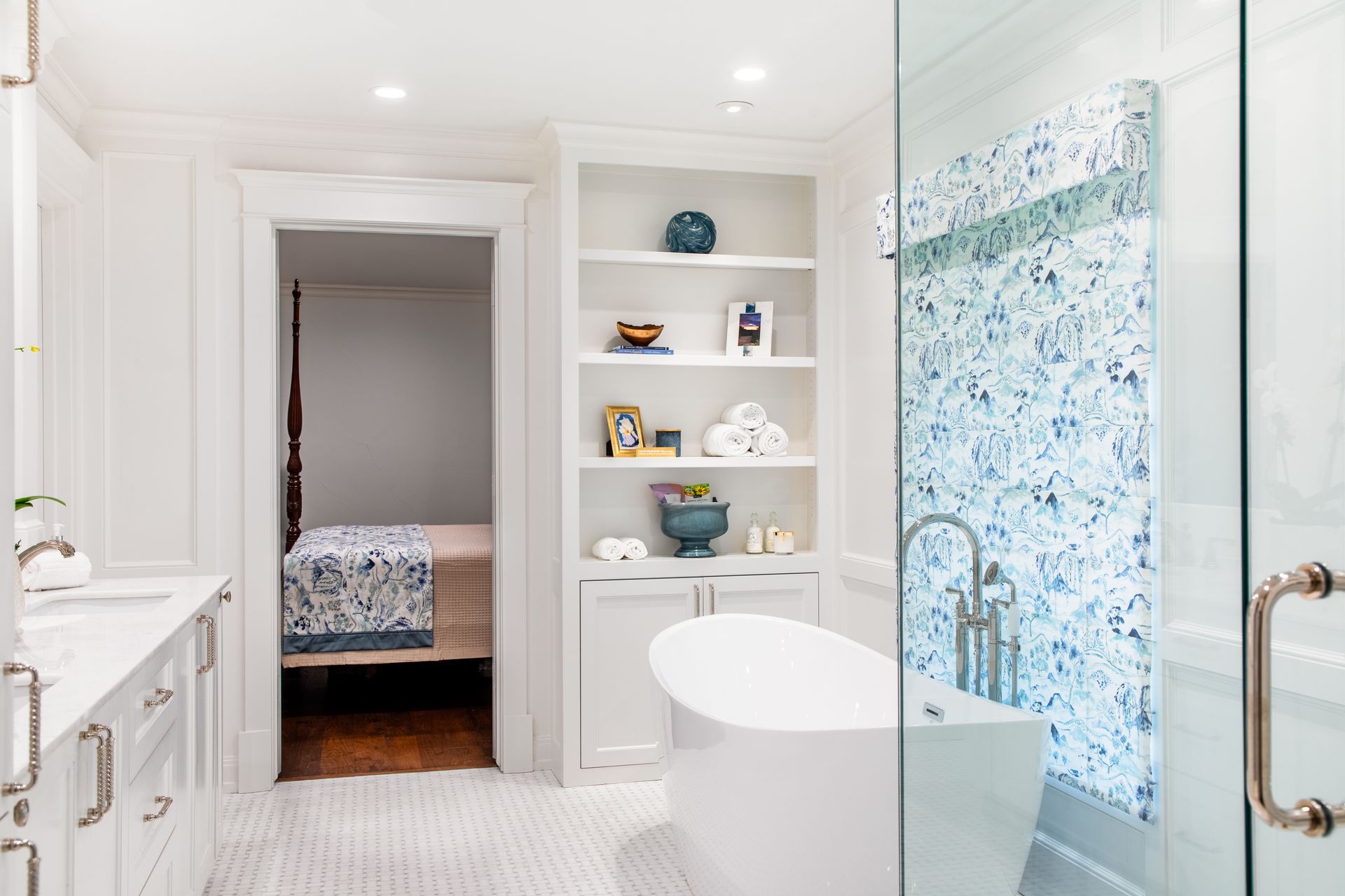Timeless elegance with detailed cabinetry, framed mirrors, patterned tiles, and warm finishes. Traditional bathrooms create a welcoming and refined atmosphere.