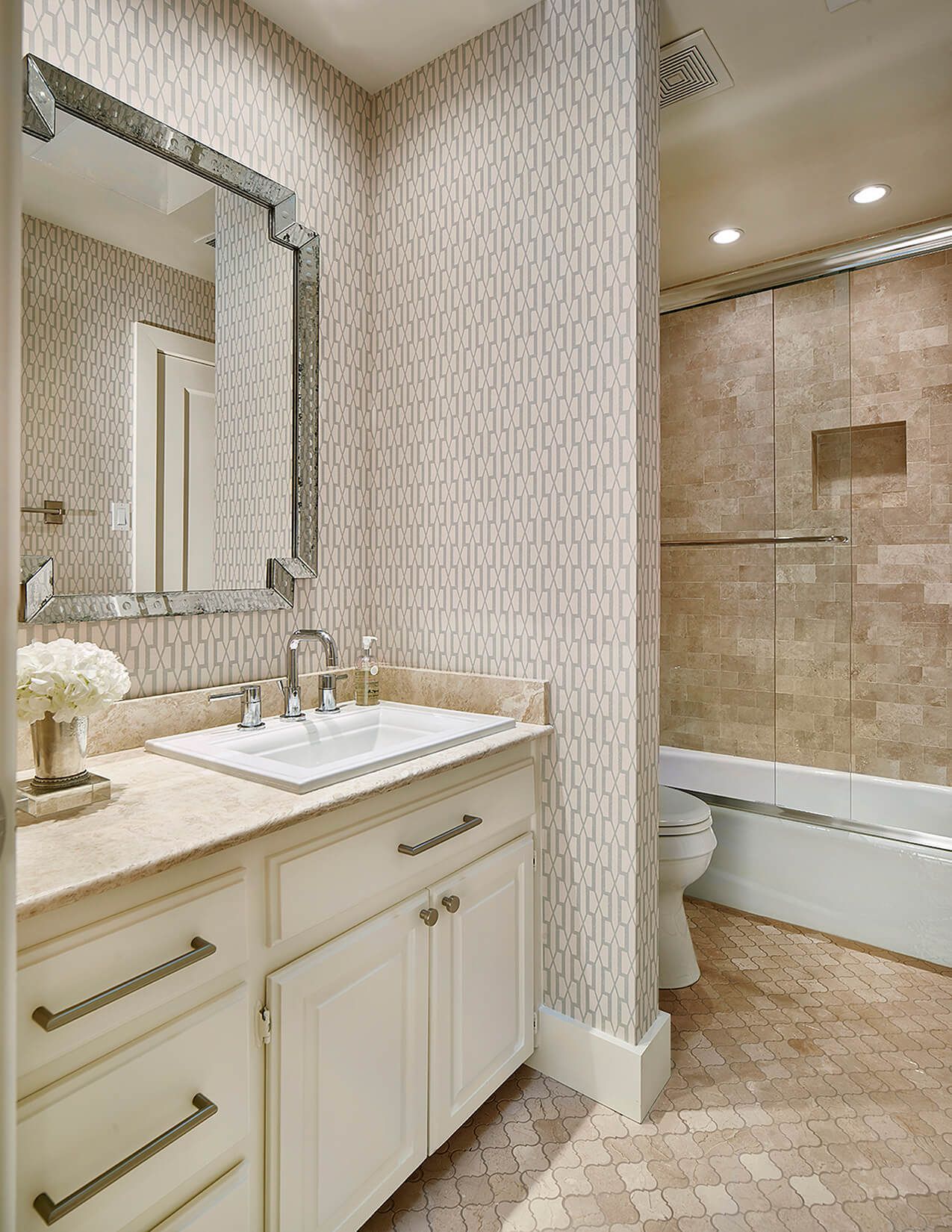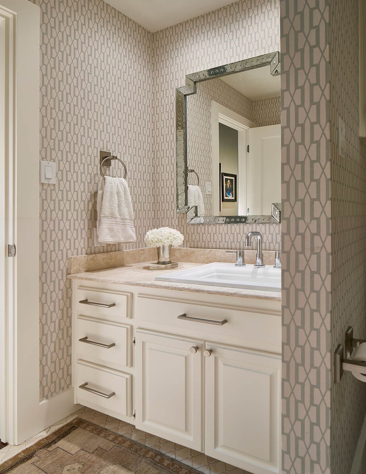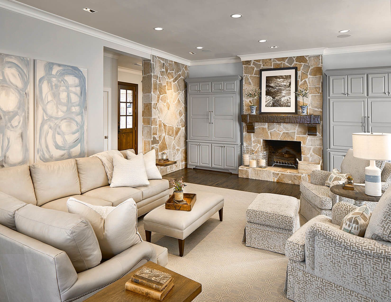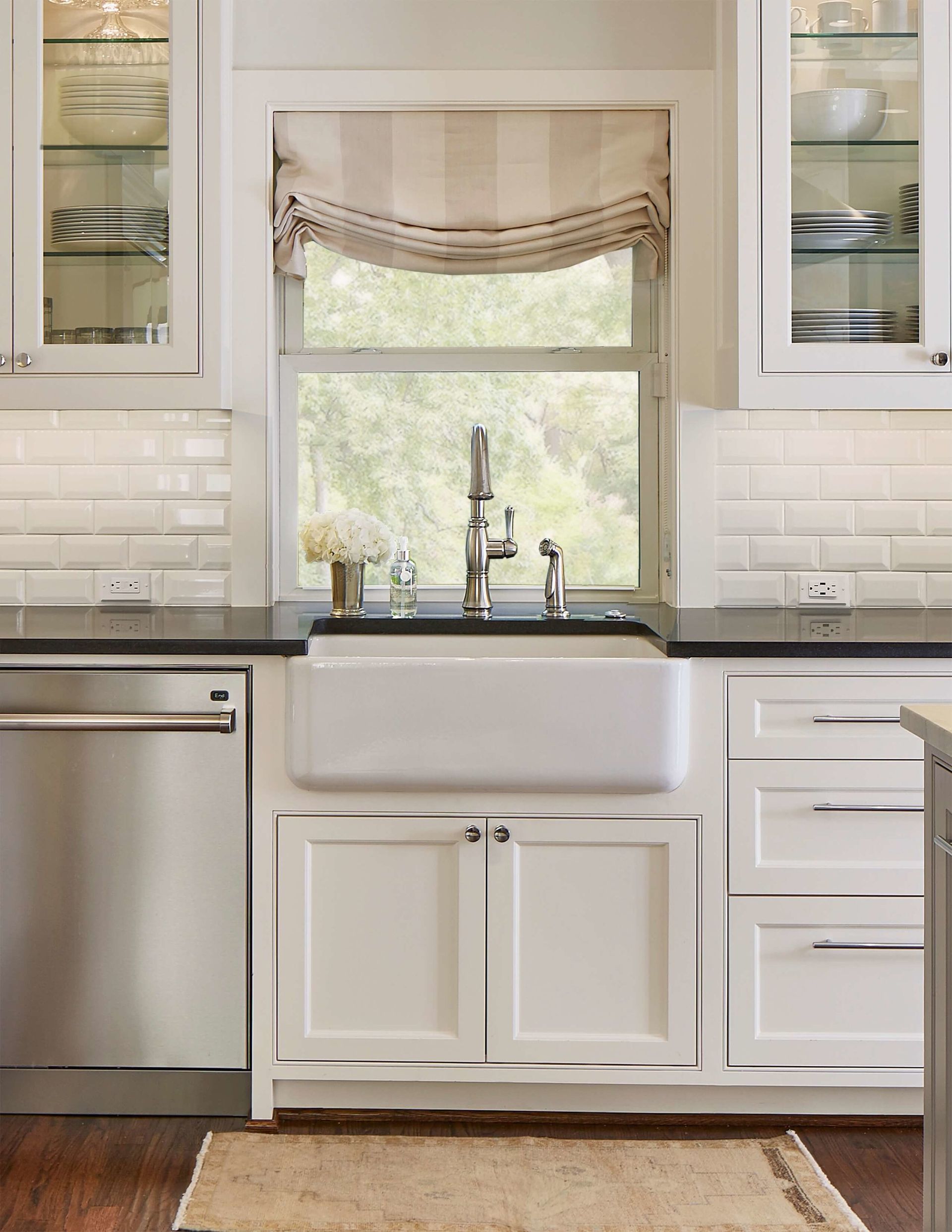 The homeowners liked the open plan and high ceilings of the living area, but felt the original 1980’s kitchen and breakfast areas with lower ceilings were outdated, isolated and closed off. Their desire was to incorporate the living, dining, kitchen & breakfast space into one cohesive design with an open flow. We solved their issues by removing walls at the kitchen and breakfast areas, sloping the ceilings of the same areas to match the existing pitch, raising the floor in the living room and installing hardwood floors throughout.